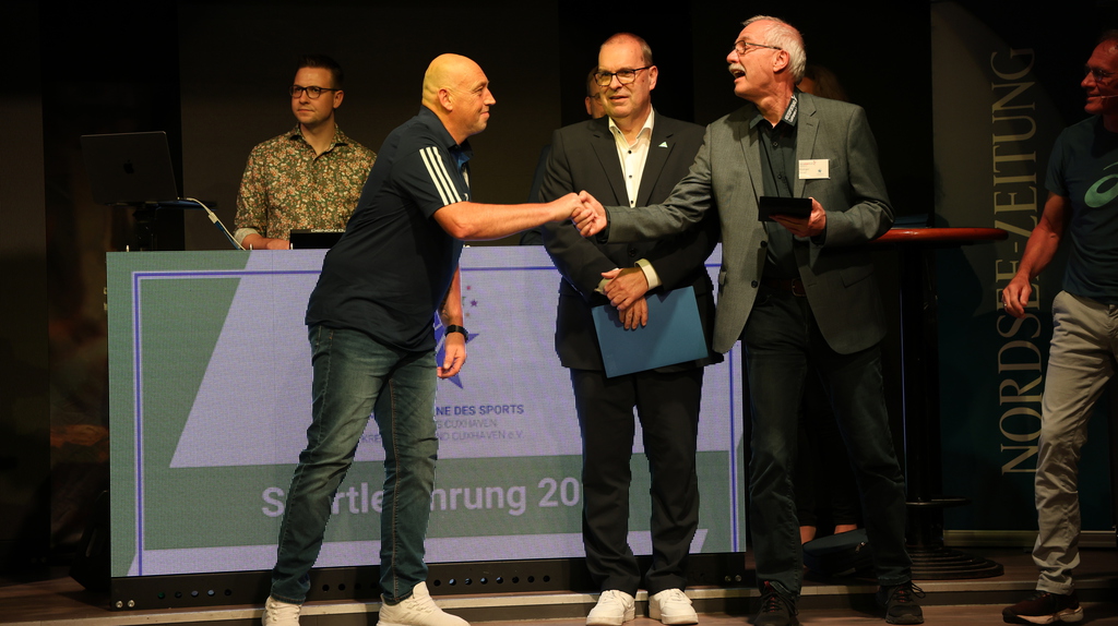 ...wurden durch den Landrat und dem Vorsitzenden des Kreissportbundes vorgenommen. Auch anwesend waren Dieter Baumann (ehemaliger Olympiasieger 1992, 5000m Lauf) und Lasse Lührs (amtierender Olympiasieger 2024, Triathlon Mixed Staffel), die ebenfalls die Ehrungen unterstützen. Für die ehrenamtlichen Personen konnten die Vereine in verschiedenen Kategorien ihre Mitglieder nominieren. Für die TSG Nordholz wurde Maik Buskohl als der Kümmerer mit Integrationshintergrund durch den Vorstand nominiert. Maik wurde durch eine unabhängige Jury zur Ehrungsveranstaltung eingeladen. Die Veranstaltung fand im Janssen (Lüdignworth) statt. Leider wurde Maik in dieser Kategorie nicht Sieger, dennoch war Maik stolz an der Veranstaltung teilnehmen zu dürfen und wertete dies als eine besondere Wertschätzung.