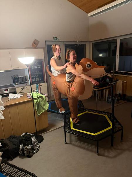 ...mit Mailin in einem gemeinsamen Dackelkostüm. Das originelle Kostüm sorgte während der gesamten Stunde für viel Gelächter.