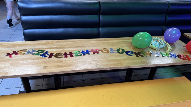Kurz vor der holländischen Grenze gab’s noch einen Stopp, dann ging’s weiter nach Westerstede, wo wir noch eine Kleinigkeit zu uns genommen haben. Gegen 16:45 Uhr waren wir wieder beim alten REWEauf dem Parkplatz, wo die Eltern schon sehnsüchtig warteten.